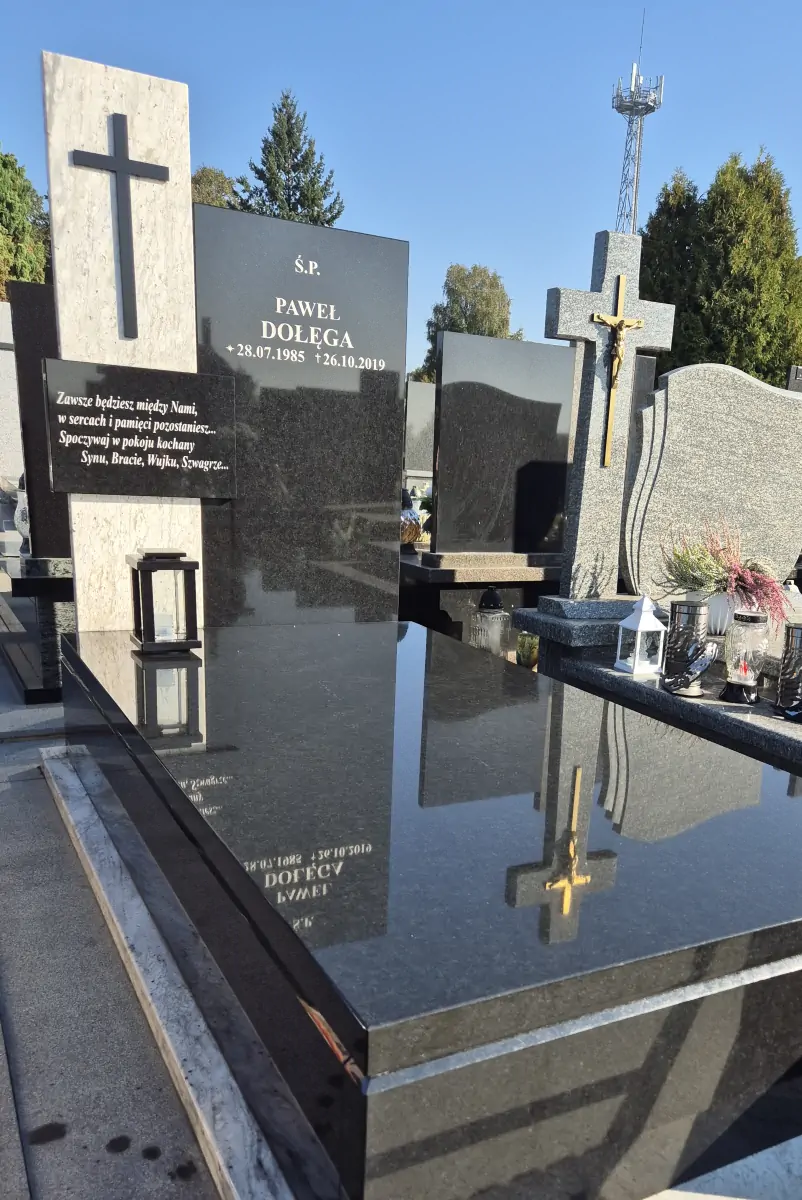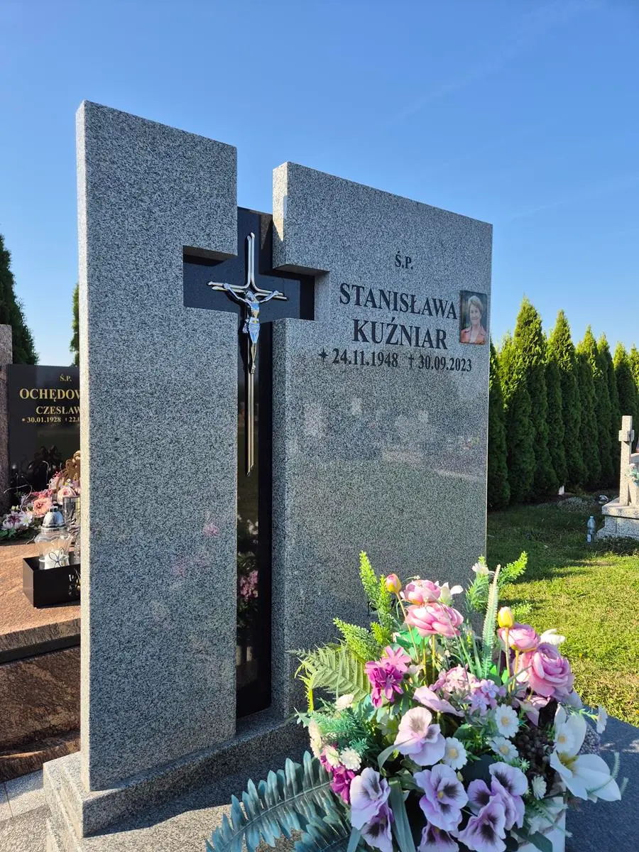 Każda krawędź i detal są precyzyjnie polerowane w naszej pracowni, co ułatwia późniejszą pielęgnację pomnika.